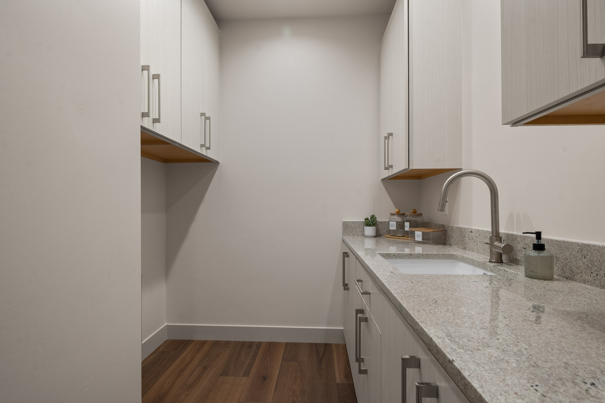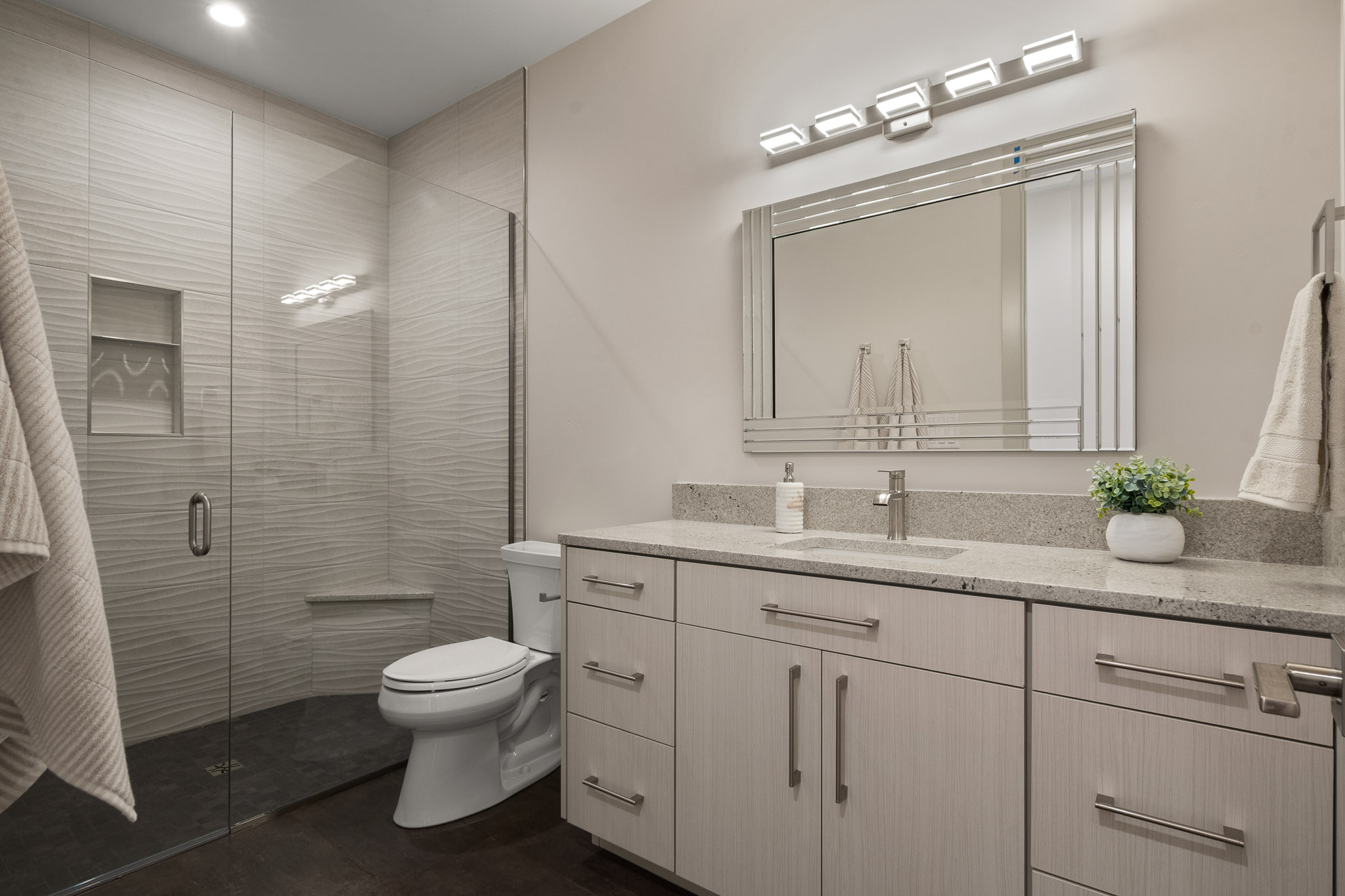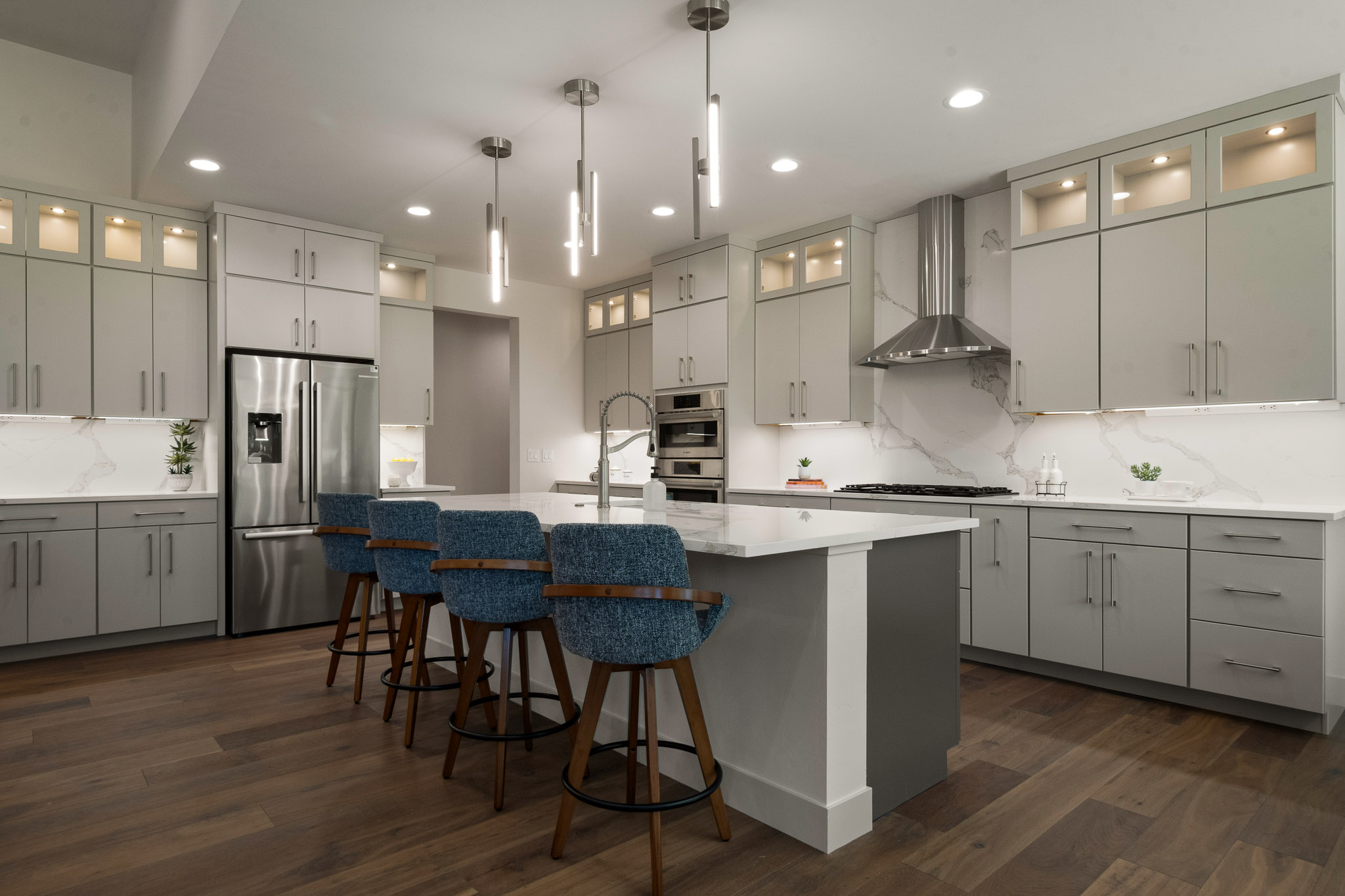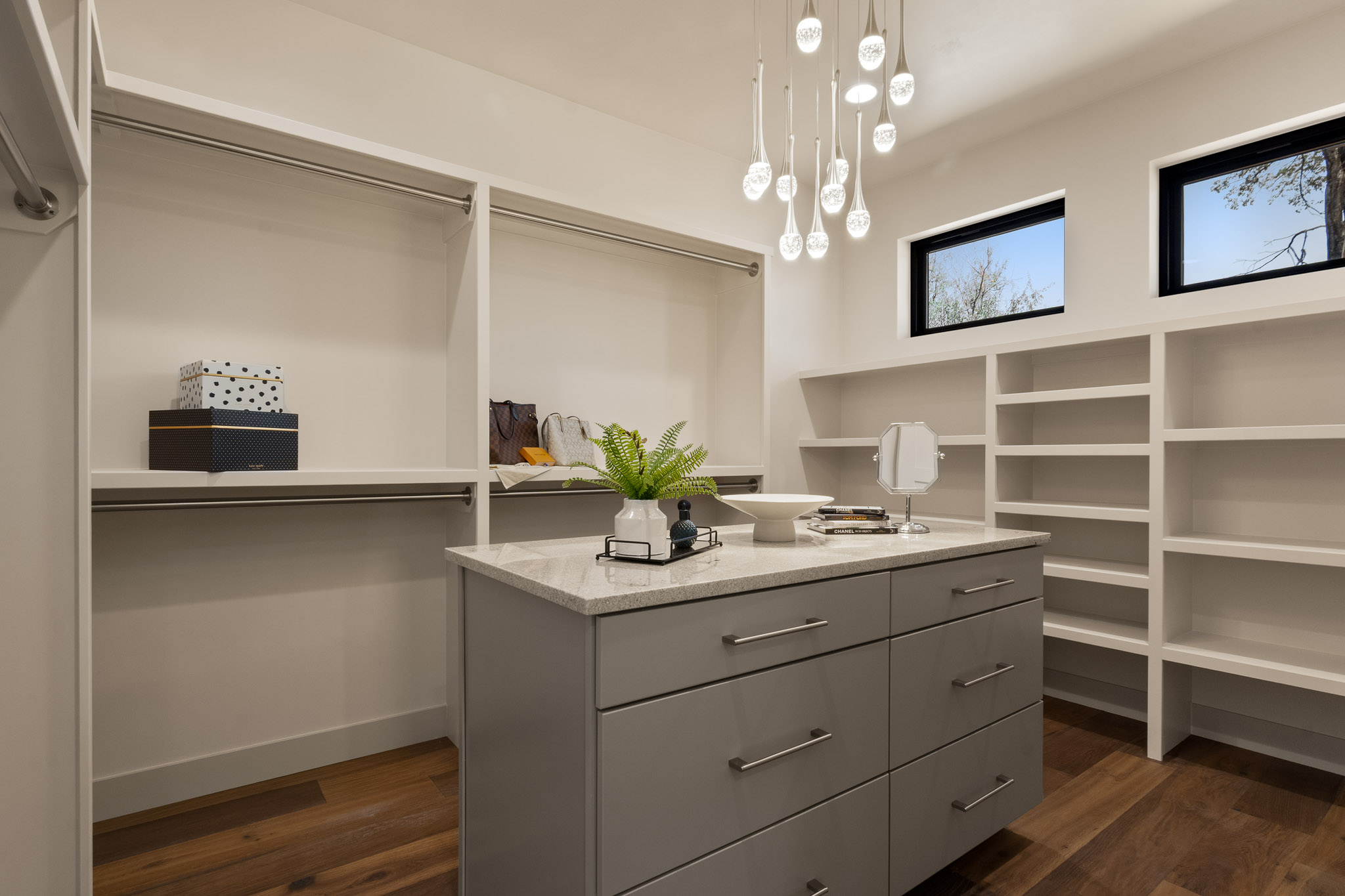 This custom home design reflects a balance between proven planning and personalized details. Clean, modern forms are softened by organic textures and finishes, resulting in a space that feels warm, intentional, and timeless.